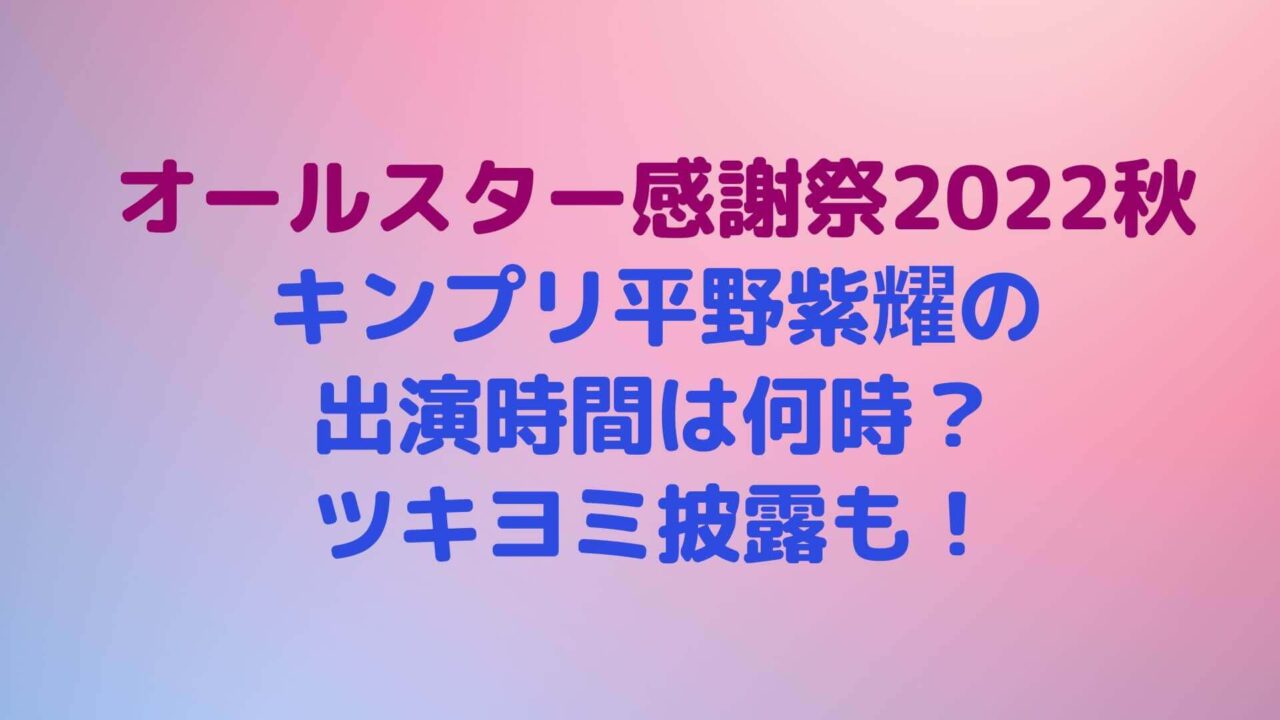 オールスター感謝祭2022秋キンプリ平野紫耀の出演時間は何時?ツキヨミ披露も!