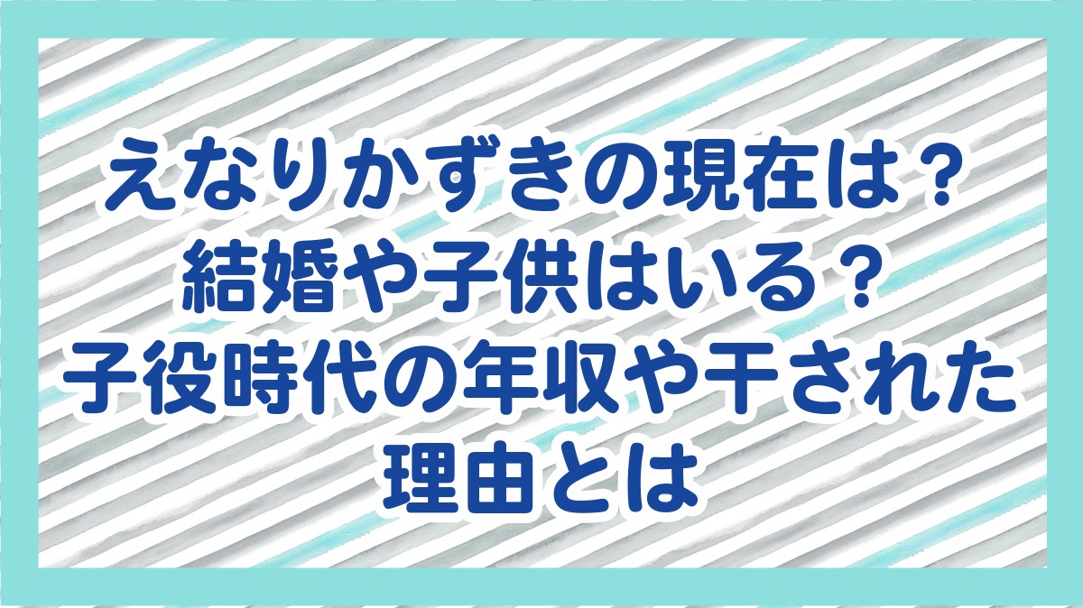そこで今回は、えなりかずきの現在は?えなりかずき 結婚相手や子供はいる?子役時代の年収や干された理由についてご紹介します。
