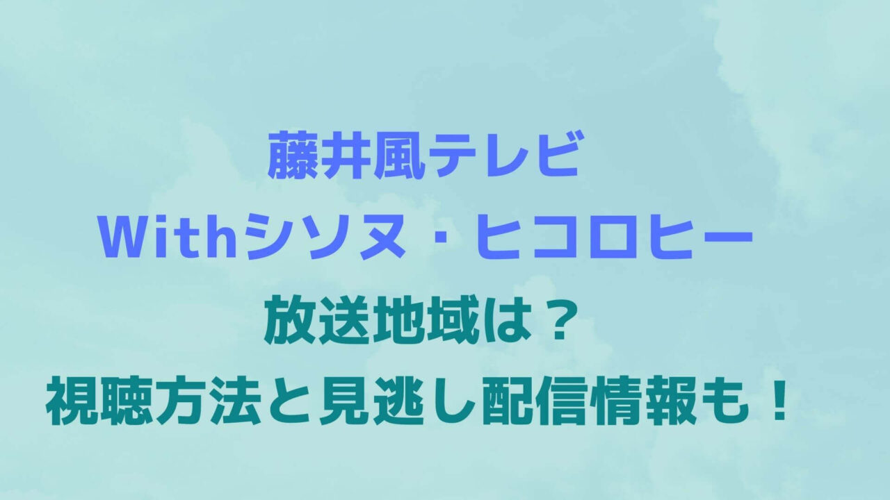 『藤井風テレビWithシソンヌ・ヒコロヒー』をリアルタイムで視聴できる地域は残念ながら関東エリアのみという事がわかりました。