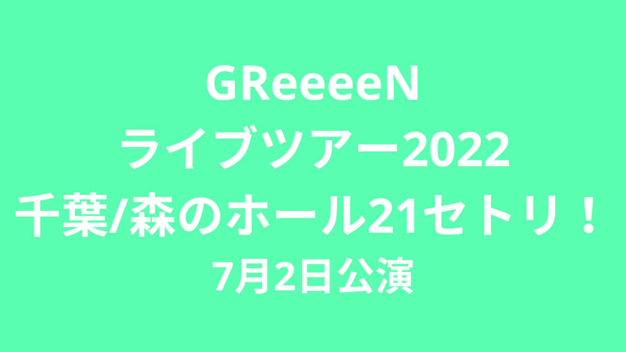 今回は、GReeeeNライブツアー2022の7月2日(土)初日・千葉公演「森のホール21」のセットリストをご紹介したいと思います。
