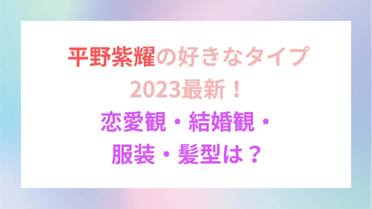 この記事では、平野紫耀さんの好きなタイプ2023最新の恋愛観・結婚観・服装・髪型などをまとめてみました。