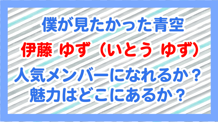 今回は、僕が見たかった青空のメンバー「伊藤 ゆず(いとう ゆず)」さんについてご紹介しました。