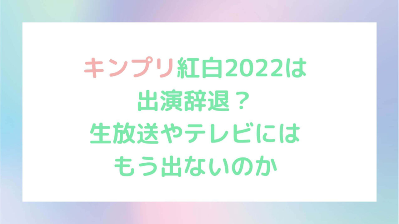 • キンプリ紅白2022は出場辞退?
