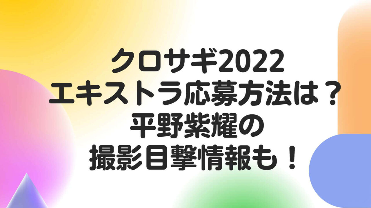 平野紫耀さんを近くで見れるチャンスがあるのはエキストラですが、クロサギ2022ではエキストラ応募があるのでしょうか?