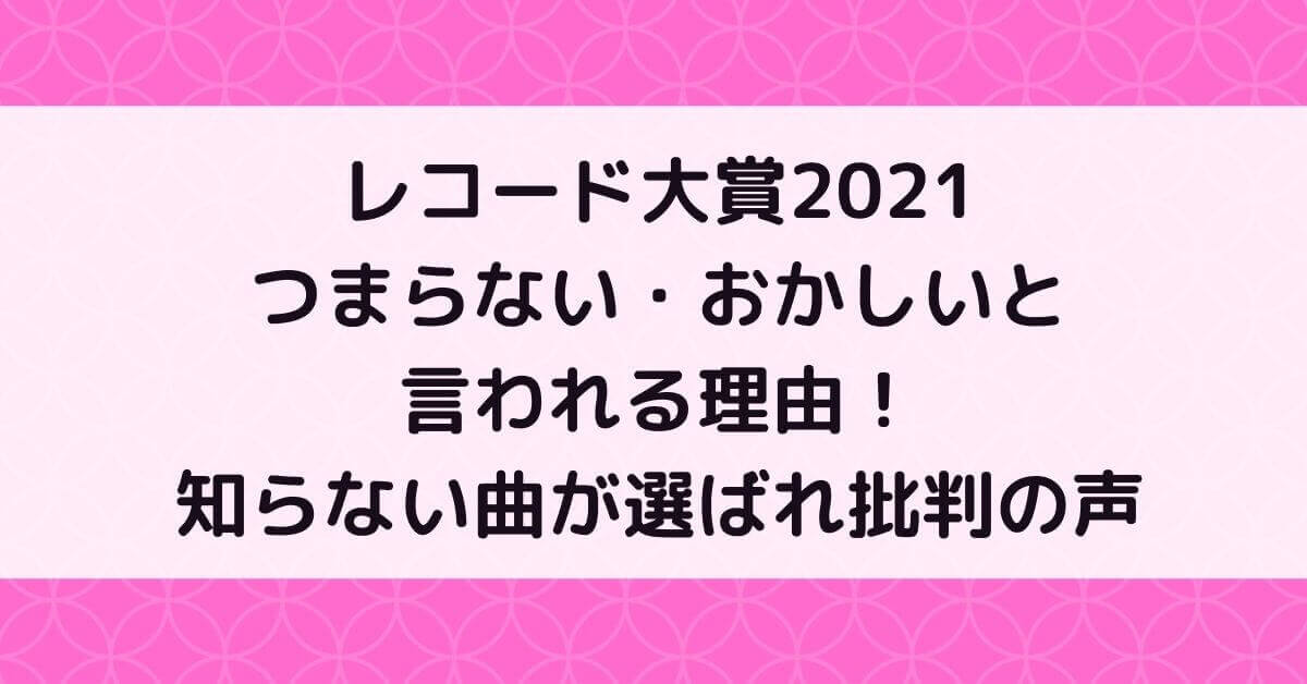 毎年恒例、レコード大賞2021も終わり、ネットでは「知らない曲が選ばれてる」と、レコード大賞自体つまらない・おかしいなどと批判の声が多く上がっていました。