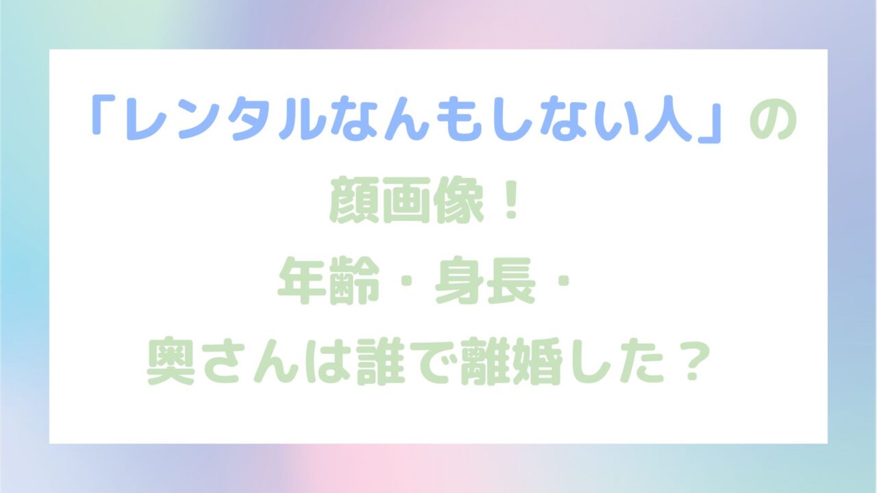 そこで今回は、「レンタルなんもしない人」の顔画像、年齢・身長・奥さんは誰で、離婚をしたのかについて調べてみました!