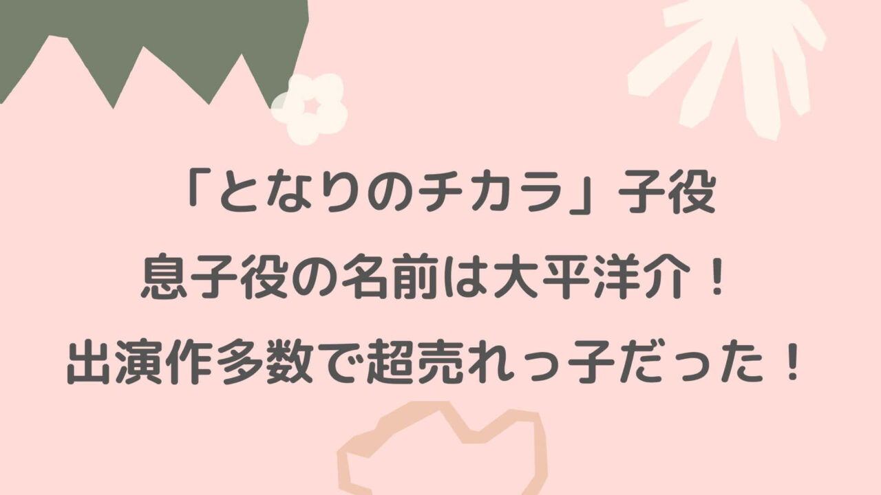 となりのチカラ子役で息子役の名前は大平洋介!出演作多数で超売れっ子だった!