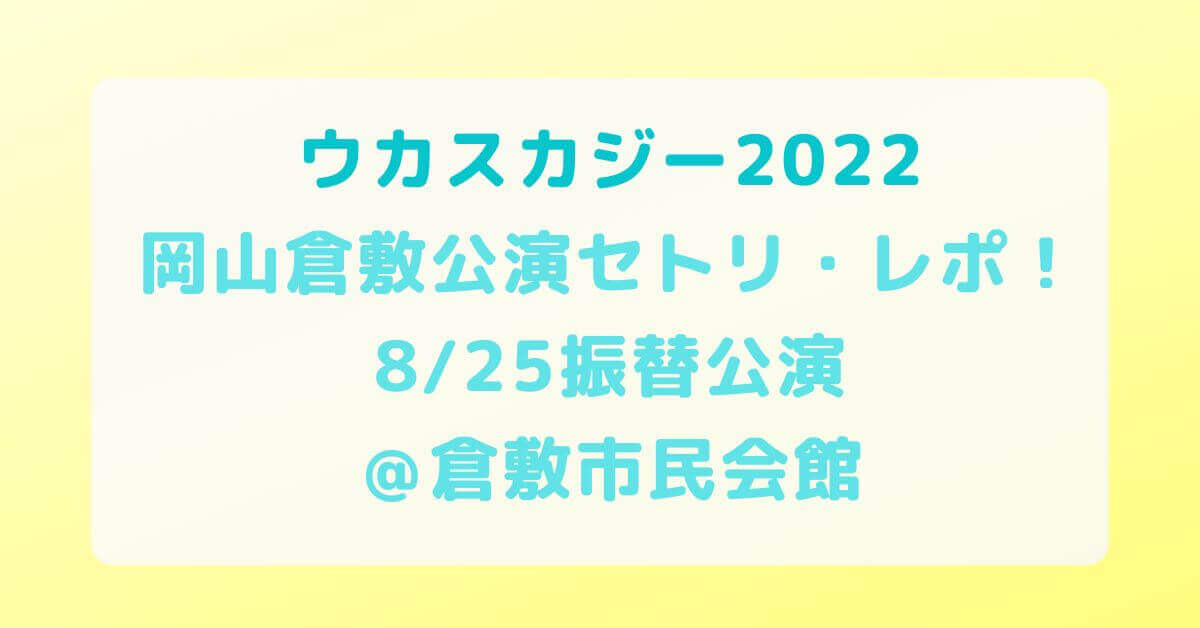 この記事では、「ウカスカジー2022岡山倉敷公演セトリ・レポ!8/25振替公演@倉敷市民会館」についてまとめていきたいと思います。